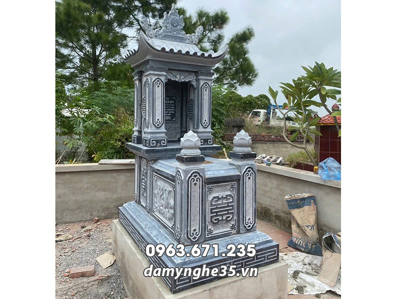 - Chất liệu đá xanh Thanh Hóa: Được khai thác từ những mỏ đá nổi tiếng, đá xanh Thanh Hóa có độ bền cao, khả năng chống chịu tốt với thời tiết, giúp mộ đá luôn giữ được vẻ đẹp theo thời gian.